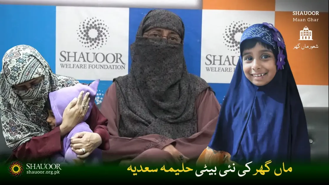 Haleema Sadia, new daughter in Shauoor Maan Ghar that is established to protect orphaned, needy, vulnerable, and unsafe girls. It not only provides a safe shelter for innocent daughters but also offers dignity, care, and support to helpless mothers and widows so they can live with respect and peace.