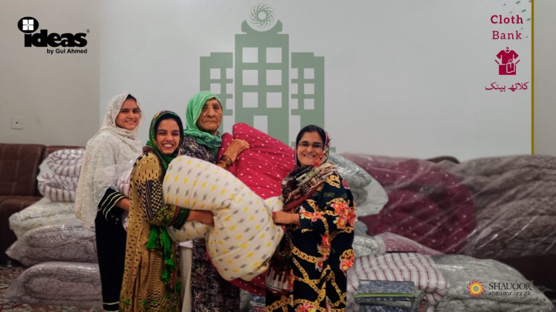 While winter’s chill isn’t fully here yet, at Shauoor Maan Ghar, our concern for protecting the mothers and orphaned girls from the cold was deepening. Just then, a heartfelt donation of comforters and bed sheets arrived from Ideas by GulAhmed. Shauoor Welfare Foundation is immensely grateful to Ideas by GulAhmed for this remarkable and inspiring act of generosity. Thanks to them, the residents of Maan Ghar are now welcoming Warm Winter 2024 as they will sleep in warmth and peace this winter, InshaAllah. Shauoor’s “Cloth Bank Program” is dedicated to providing seasonal and festive clothes and accessories to the deprived part of the community for every season and occasion, such as marriage, Eid, and four seasons throughout the year, specifically during disaster situations like floods.